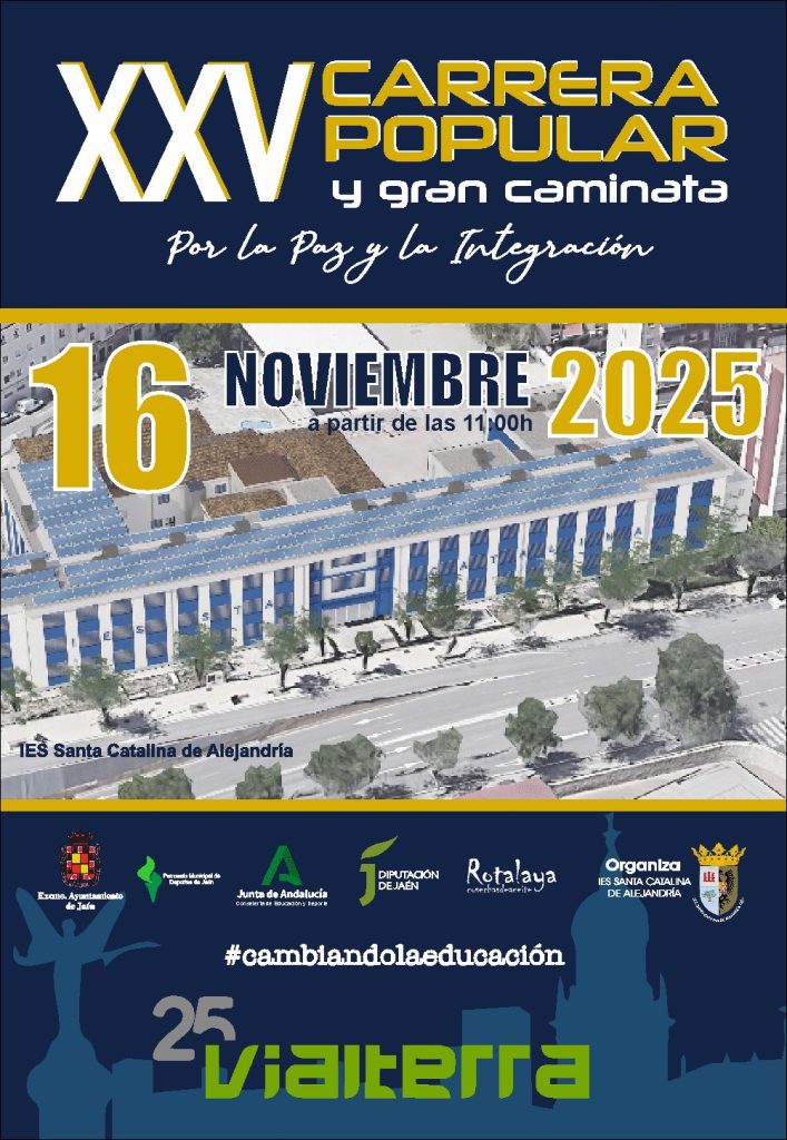 VIALTERRA ha asistido hoy 11 de noviembre junto a el Delegado de Educación Francisco J. Solano; la Diputada de Cultura y Deportes, África Colomo; la Concejala presidenta del Patronato de Deportes Beatriz López y la Directora del IES Santa Catalina de Alejandría, María Pilar Abelenda, al acto de presentación del patrocinio de la CARRERA POPULAR Y GRAN CAMINATA “POR LA PAZ Y LA INTEGRACIÓN”, que se celebrará en su 25ª edición el próximo día 16 de noviembre en Jaén.